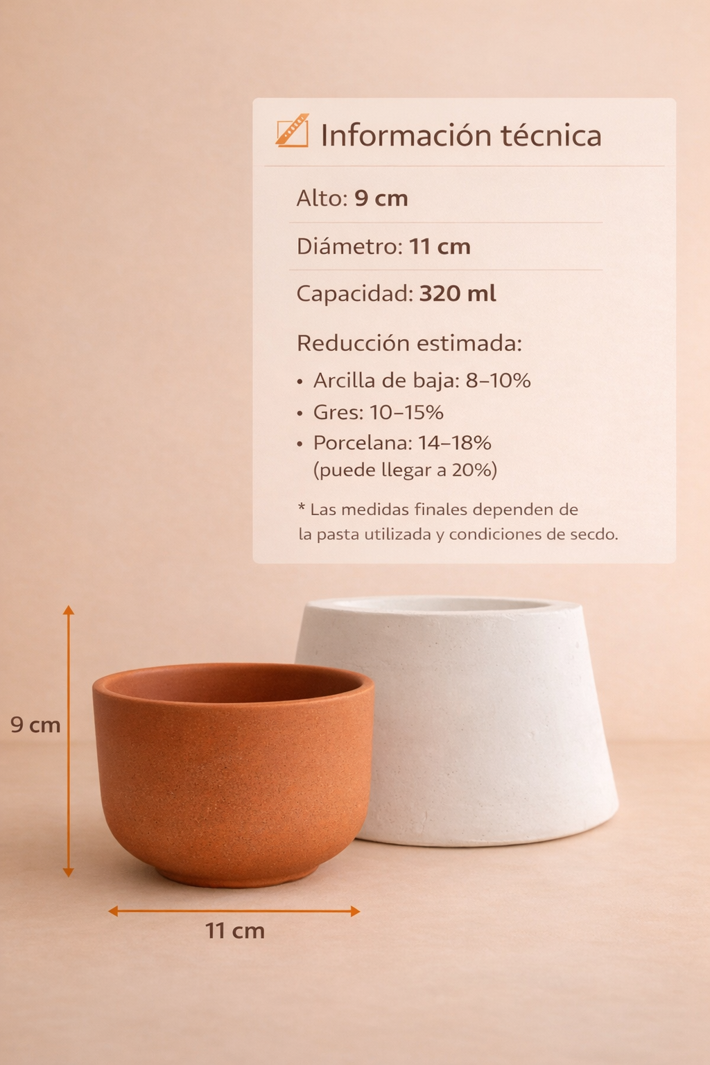 Molde de yeso ideal para realizar cerealeras, macetas o tazas sin asa en cerámica.